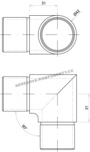 Der Ellbogenverbinder 90 Grad - Edelstahlverbinder des Handlaufs zur Verbindung der zwei Stk. Edelstahlhandläufe in einem Durchmesser von 42,4 mm. Die Verbindung ist mit Klebstoff gesichert.